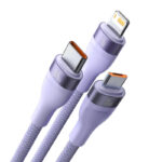 3in1 USB cable Baseus Flash II Series, USB-C + micro USB + Lightning, 66W, 1.2m (Purple)