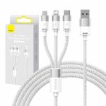 3in1 USB cable Baseus StarSpeed Series, USB-C + Micro + Lightning 3,5A, 1.2m (White)