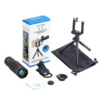 The kit includes a specially designed clip that allows you to quickly and stably mount the lens on most smartphones. You also get a rubber cap, which will provide you with more comfort when using the accessory as a telescope. In the package you will also find a tripod, which will make your photos perfectly stable.