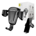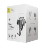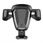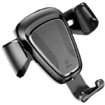 Gravitational Baseus phone holder, mounted on the car ventilation grid. The adjustment range of the holder is 360 degrees. Designed for phones from 63 to 88 cm wide. Automatic side clamps of the cradle automatically adjust to the width of the phone. The cut-out track allows you to connect the charger.