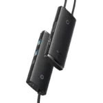 The Baseus hub is distinguished by a compact design, thanks to which you can successfully store it in your backpack or handbag. Moreover, ABS plastic finish is responsible for durability of the device, and the cable braided with durable material ensures resistance to wear. Moreover, the white light indicator will let you know when the device is working.
