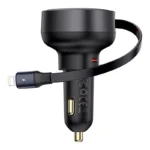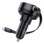 Baseus Enjoyment Pro is a thoughtfully designed car charger – it features a retractable cable, 70cm in length, equipped with Lightning and USB-C tips, and a USB-A port built into the stem, allowing for simultaneous charging of up to three different devices, saving the user both time and money, especially since they support fast charging. The gold-plated plugs also provide lower resistance. Moreover, thanks to the retractable design, it will be much easier to keep order in the car and save frustration associated with untangling cables. The light built into the charger not only adds elegance but also makes it easier to find it at night. The charger is universal and will work in passenger cars, SUVs, or trucks.