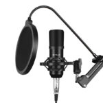 Adjust the position of the microphone to suit your needs. You’ll find a tripod included, which you can easily attach to a surface of your choice up to 15 cm thick. You can adjust its angle within 360°. In addition, the pop filter (360°) and microphone mount (270°) are also adjustable. Enjoy the freedom of use with the Puluz PU612B Studio Broadcast.