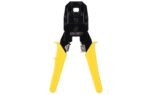 Ethernet crimper is an indispensable tool for each installer, who has daily contact with telecommunication networks. Deli brand tool in yellow allow you to crimp RJ45 plugs in a safe way. With this device you can independently crimp the ends on cables of any length. This practical tool is ideal for modular connectors: 8P (RJ-45 – 8P8C), 6P (RJ-14-6P4C & RJ-12 – 6P6C) and 4P (RJ-9 – 4P4C). The kit also includes a stripping tool and 6 network connectors.