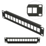 Patchpanel 10″ with 12 modules allows you to build a computer network with the required number of lines and scale it up if necessary. The advantage of this type of panels is the ability to combine copper modules and optical adapters of different categories and connector types.