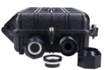 The box is made of polycarbonate, so it can be installed in wells, cable ducts and overhead installations without fear of harmful moisture. Inside, there are 4 trays that can hold up to 24 splices each, i.e. up to 96 splices in total.