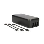 The Extralink EPB-124 30000 mAh power bank comes with three cables – microUSB, USB Type-C and Lightning elegantly hidden in the back of the powerbank’s case.