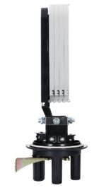 The coupler is designed for mounting on poles or in cable trays. Three round ports and one oval port allow for the insertion of fiber optic bus cables while ensuring adequate tightness using shrink sleeves.