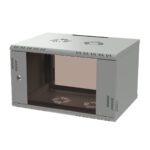 The cabinet is designed for wall mounting, with holes for easy hanging and tightening of the frame. It is available in black or gray, different heights: 4U, 6U, 9U or 12U, and depths of 450 or 600 mm. The maximum load the cabinet can support is 70 kg, making it suitable for storing various types of network and server equipment.