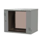 The cabinet is designed for wall mounting, with holes for easy hanging and tightening of the frame. It is available in black or gray, different heights: 4U, 6U, 9U or 12U, and depths of 450 or 600 mm. The maximum load the cabinet can support is 70 kg, making it suitable for storing various types of network and server equipment.