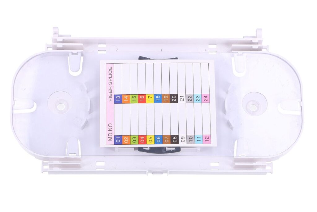 The included fiber optic trays give the possibility of laying 24 splice guards. The mounting brackets ensure that the cable is securely gripped and prevents it from slipping out.