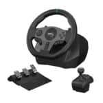 Are you a fan of racing games and want to feel like you’re on a real track? The PXN-V9 steering wheel offers high realism, customizable parameters and wide compatibility. It also comes with pedals and a gearbox so you can put yourself in the shoes of a racing driver. Wheel offers 8 programmable buttons and Mini Jack 3.5 mm port.