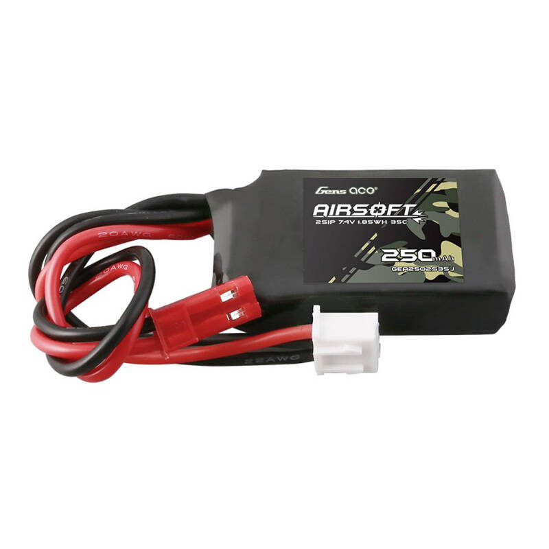 Gens ace 250mAh 7.4V 35C 2S1P Airsoft Gun Lipo Battery with JST-SYP Plug Connector.