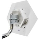 The dual-polarized directional antenna with a gain of 19dBi , with an integrated aluminum housing, allows Routerboard Series 411, 433 and 711 devices to be mounted inside it. It is designed to set up dual links or 2×2 MIMO 802.11n standard over short distances. It has integrated pigtails terminated with an MMCX connector. The LAN port is led out with a waterproof hole, the diameter of which allows the insertion of an RJ45 plug without removing the housing. The antenna has a very wide operating range containing from 4.9 to 6 GHz.