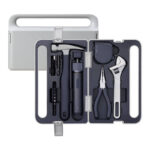 All tools are stored in a robust tool box, which is made of high-quality ABS plastic. It impresses not only with its modern design but also with its durable and damage-resistant construction. On the sides of the box you will find clips, which allow you to open and close it conveniently, and each tool has its own place, which allows you to keep order and tidiness.