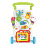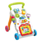 The Huanger HE0801 interactive walker/pusher is ideal for parents who want to support their children in learning to walk in a fun and safe way. With interactive elements and attractive colors, the walker captures the attention of toddlers, encouraging them to explore and take their first steps. Equipped with a detachable disappearing board, it allows the child to draw and play creatively, developing imagination and artistic skills. The pull-out telephone with squeaker and rattle, and the mirror with dial to spin further engage the child, providing stimuli to support the development of visual perception and motor skills.