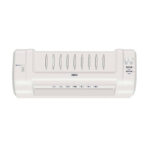 The slider located on the right side allows you to set the laminating thickness from 80 to 110 microns and 120 – 175 microns. The device heats up quickly, after 5 min it is ready to work. It works quietly, and the LED indicator will inform you about the laminator working status.