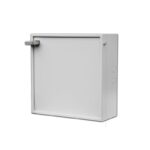 Mantar reinforced cabinet GM-40/40/18 designed for wall mounting in places particularly vulnerable to devastation and burglary. Sheet steel: body thickness 1.5 mm, door thickness 2 mm, light grey colour. It constitutes a mechanical shield for telecommunication equipment.