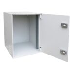 Mantar, reinforced cabinet SP-19” 15U depth 400 mm, designed for wall mounting in places particularly vulnerable to devastation and burglary. Made of 2 mm thick black sheet metal. Light grey colour. Enables installation of 19-inch devices and constitutes a mechanical shield for telecommunication equipment. Embossing on the side walls enables gravitational ventilation. As a standard, 2 holes each at the top and bottom (ø38 blinded).