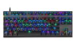 Motospeed K82 is a keyboard without a number block. Its small size increases its mobility, so you can take it virtually anywhere. What’s more, it takes up less space on your desk, providing more room for comfortable gaming. The customizable RGB backlighting gives it a fantastic gaming feel, and the ability to lock the Windows key helps prevent accidental key presses and unwanted interruptions to your game.