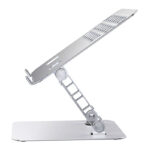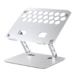 The stand is made of durable silicon alloy, which combines lightness with strength. The silver color gives it a modern and stylish look that blends well with different types of interiors. The material not only looks elegant, but also effectively dissipates heat, which helps keep the laptop at an optimal temperature during intensive work.