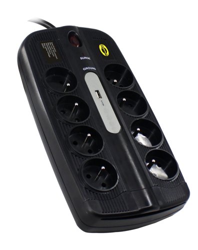 ORVALDI ORV-8PL USB 3.0 is an anti-interference and surge protector with 8 outlets (PL, 16A), 3 meter long thick power cable and 1 USB 3.0 input. It protects against surges with a very high efficiency filter of 4500 J. Power cable 3 meters long with high quality insulation, which reduces the risk of damage and electric shock.