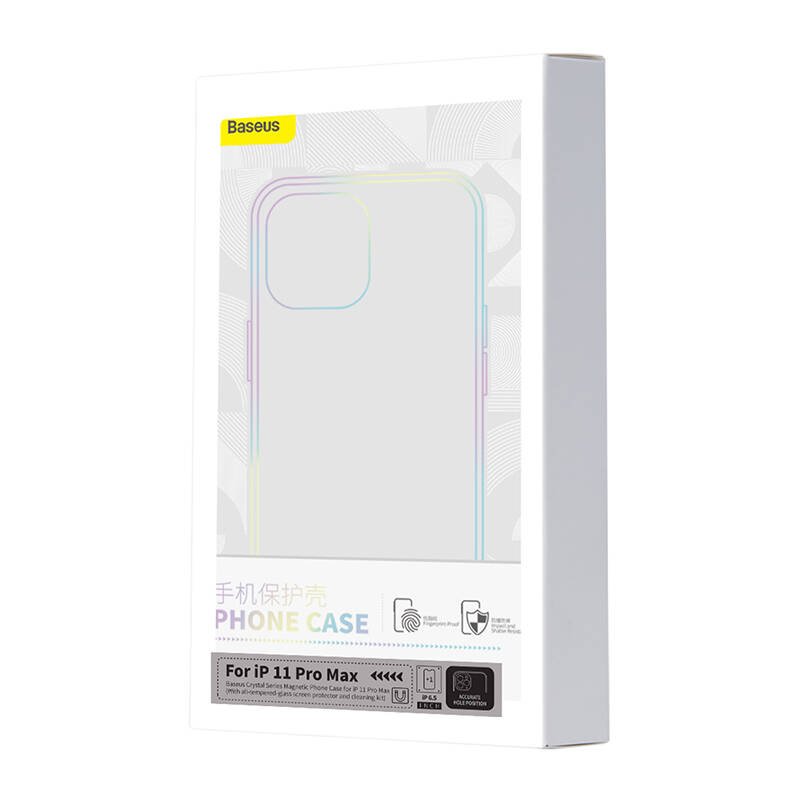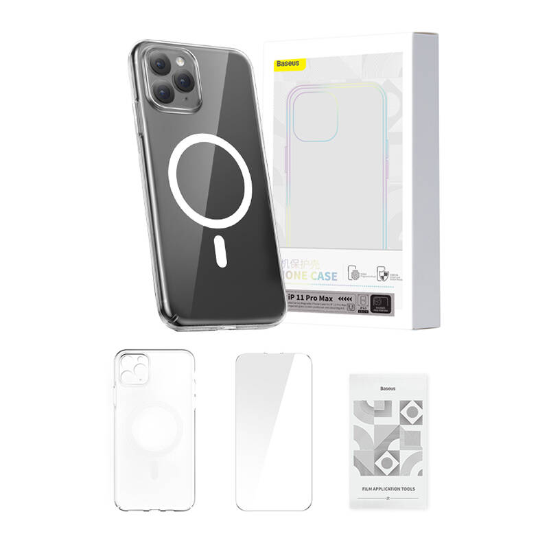 Baseus Magnetic Crystal Clear protective case for iPhone 11 Pro Max (transparent) + tempered glass + cleaning kit