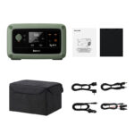 The station uses a LiFePO4 battery with a capacity of 180000 mAh, which translates into efficient operation. With it, you’ll charge an iPhone 14 about 45 times, a camera about 39 or a drone about 12 times. You can also connect together max. 4 power stations gaining up to 2400 watts of power. As a result, you will power such equipment as a small refrigerator (15 h), an electric grill (1.5 h), a chainsaw (1.3 h) and many others. On the other hand, charging 4 stations will take about 90 minutes. What’s more, the battery is resistant to damage, so you can use the station safely.