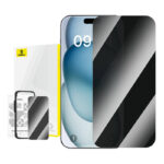 Privacy Tempered Glass Baseus Superior for iPhone 15 +cleaning kit and EasyStick (clear)