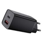 The charger from Baseus features two output ports: USB Type-C and USB, so you can charge two devices at the same time. Plus, both ports support fast charging. With CCGAN2L-B01 you will charge not only your Android phone, tablet or iPhone, but also your laptop or game console.