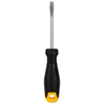 Practical and durable flathead screwdriver in black. The handle of the product is made of high quality plastic. There is a practical hole in it, which makes it possible to hang it, for example, on a tool board. The screwdriver fits perfectly in your hand and is extremely comfortable to use.