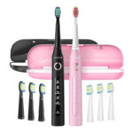 Amaze everyone with a dazzling smile. The ADA-approved FairyWill FW-507 sonic toothbrush generates vibrations at up to 40,000 per minute and offers 5 modes to choose from. It is also equipped with a smart 2-minute timer. Its long-lasting battery provides up to 30 days of use on a single charge. The set includes up to 2 toothbrushes – black and pink, 2 carrying cases and 8 interchangeable tips (6 standard and 2 for interdental spaces). This is an ideal choice for families or couples!