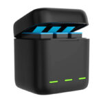 The TELESIN charger for charging the batteries of GoPro Hero 9, 10, 11 and 12 series cameras is designed for those who require their devices to be ready at all times. Not only does it allow you to instantly charge the three batteries, but also allows you to safely store them along with memory cards. The kit also includes 3 rechargeable batteries with a capacity of 1750 mAh each.