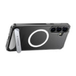 The Torras Pstand case for Samsung S25+ features a magnetic design and offers a stable stand for comfort and protection of your device. It also allows fast wireless charging, and compatibility with magnetic accessories enhances its functionality.
