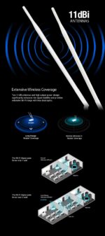 Totolink N300RH guarantees a long wireless range. Two antennas with 8 dBi gain and high performance significantly increase signal stability and extend the range of the wireless network.