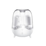 The device is operated via a single button. There are two operating modes: the first gear, which gently distributes the steam, and the second gear for quick humidification with a large mist ejection.