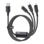 USB-A 3-in-1 Cable, Essager, EXCMTL-JJ01-P, USB-C/Lightning/Micro, 100W, 1.2m (black)