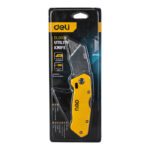 Deli Tools EDL006Z utility knife will work well in many situations. The compact, sturdy design supports high user comfort. The tool offers a blade extension mechanism, which is made of SK2 carbon steel. The set comes with 5 additional blades, which you can easily replace with new ones.
