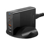 | Prąd wyjściowy | USB-C1/C2/C3 (max. 75W) – PD: 5V/3A, 9V/3A, 12V/3A, 15V/3A, 20V/3,75A PPS: 3,3-11V/5A USB-A1 (max. 60W) – 4,5V/5A, 5V/4,5A, 5V/3A, 9V/3A, 12V/3A, 15V/3A, 20V/3A USB-A2/A3 (max. 10W) – 5V/2A USB-C1+USB-C2/C3 – 45W + 30W (max. 75W) USB-C1/C2/C3 + USB-A1 – 45W + 24W (max. 69W) USB-C1/C2/C3 + USB-A2/A3 – 65W + 5V/2A (max. 75W) USB-C2 + USB-C3 – 45W + 30W (max. 75W) USB-C1 + USB-C2 + USB-C3 – 35W + 20W + 20W USB-C1 + USB-C2 + USB-A1 – 35W + 20W + 18 W USB-C1 + USB-C2/C3 + USB-A2 – 45W + 20W + 5V/2A USB-C1 + USB-A1 + USB-A2 – 45W + 18W + 5V/2A USB-C1 + USB=C2 + USB-C3 + USB-A1 + USB-A2 + USB-A3 – 30W + 18W + 5V/3,4A + 5V/2A |