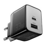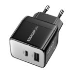 Wall charger, Essager, ECT33W-LJB01-Z, GaN, 1xUSB-A, 1xUSB-C, 33W (black)