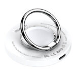 The charger, thanks to its design that resembles a standard phone holder, allows you to magnetically attach it to the case of your phone, which you can hold securely thanks to the ring grip. It tilts 180 degrees away from the case, so you can place your phone on a table at a comfortable angle and use your device while it charges.